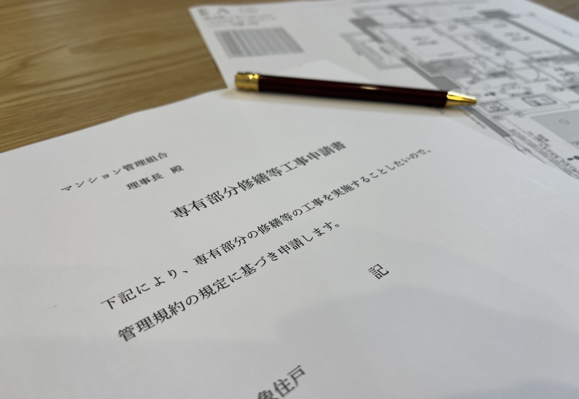 マンション管理組合に対して行う、事前の許可申請手続きと添付書類の例