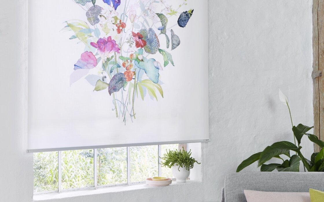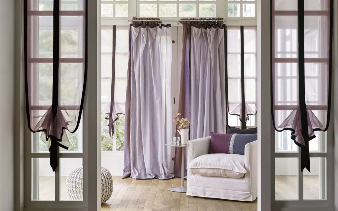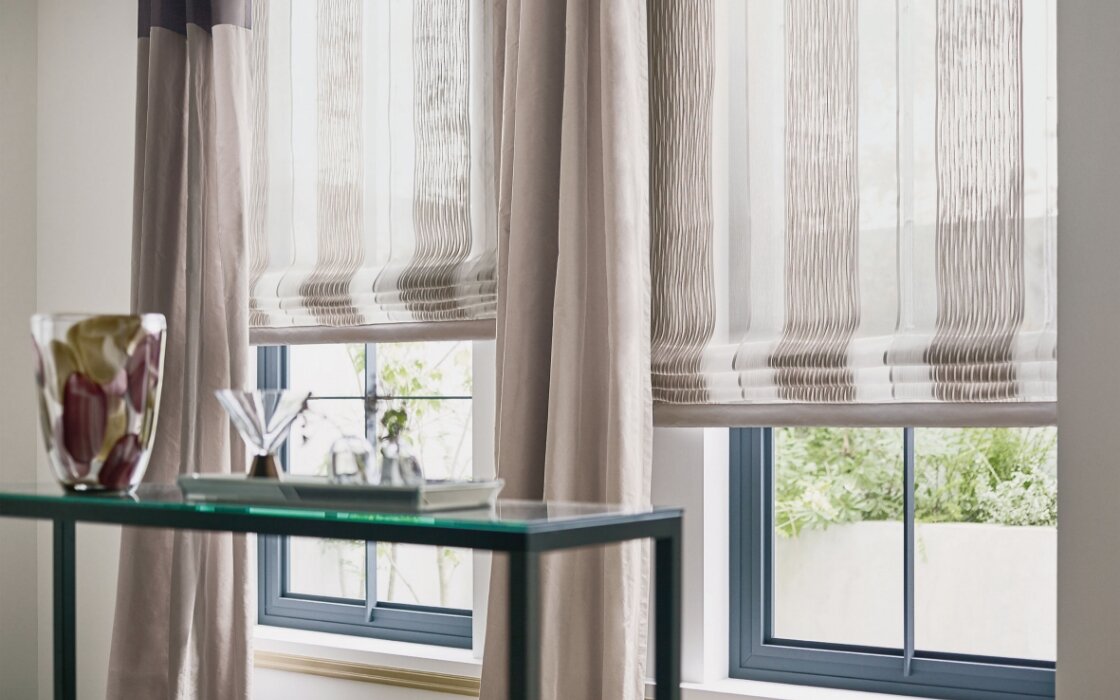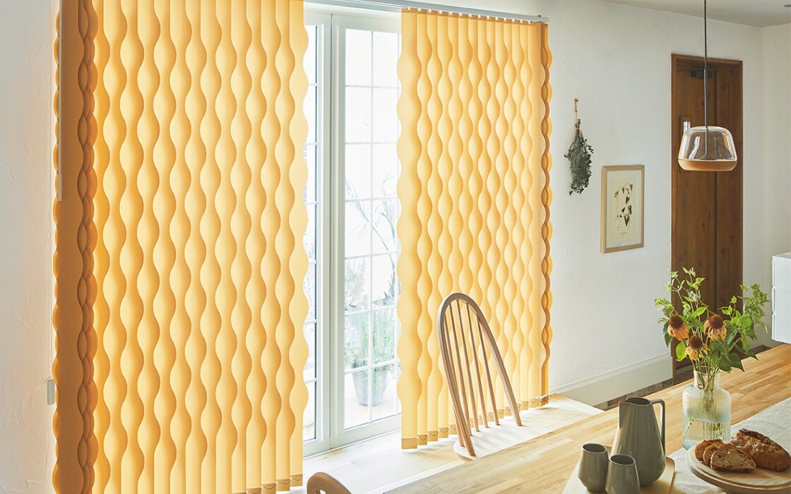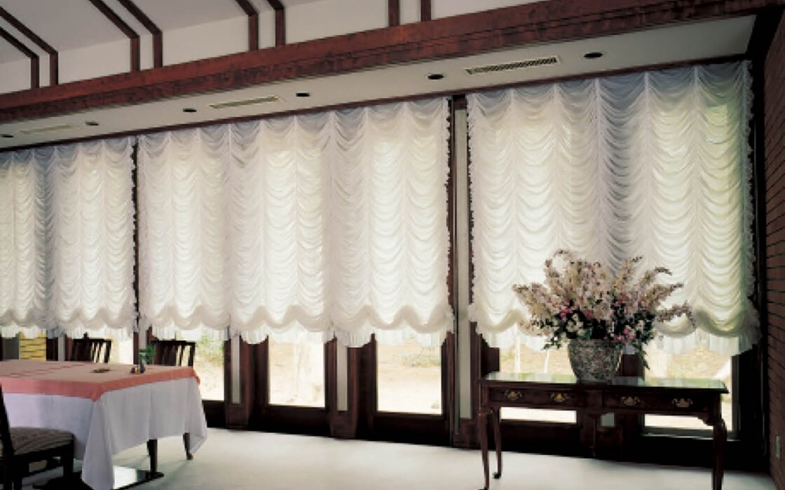 上下に昇降するスタイル。生地の使い方や、巻き上げ方によって、シンプルにもエレガントにも仕上げることができます。