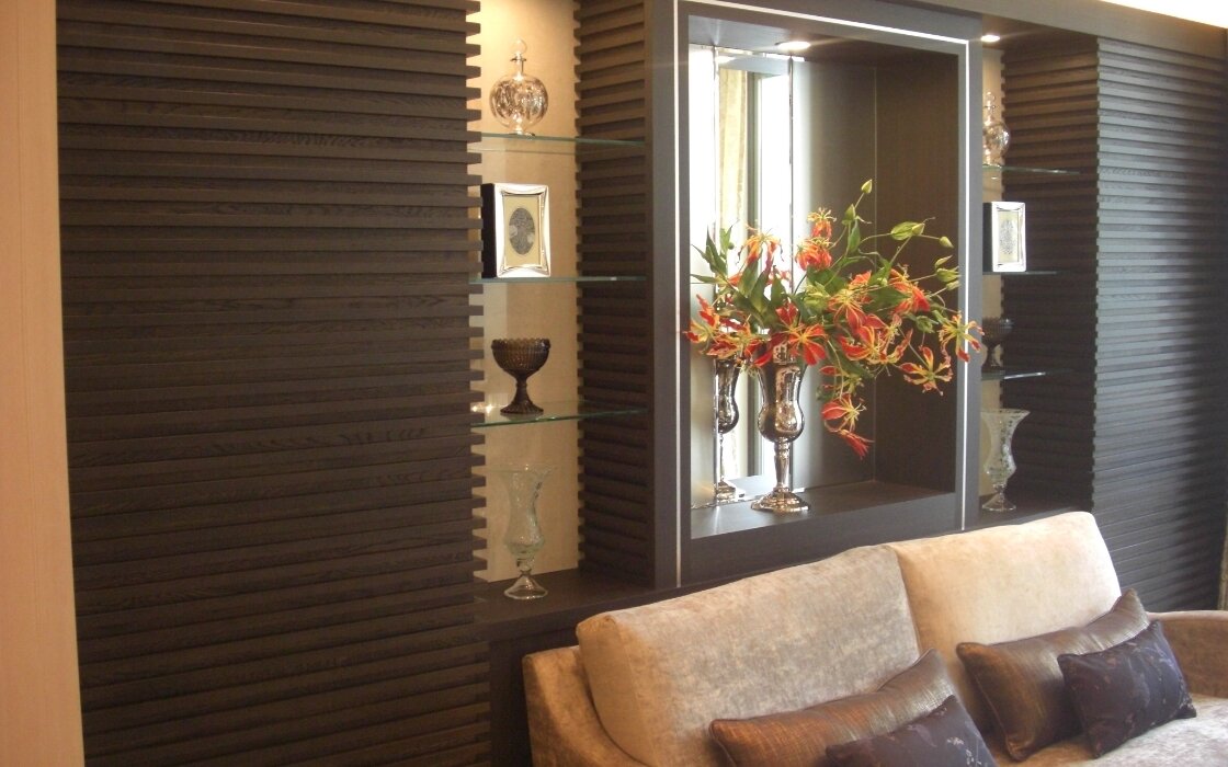 ガラス素材や、鏡などを合わせてデザインする事も出来ます。ガラスは飾るものをより美しく見せたり、鏡は背面に設置する事によって、空間を広く見せたりする視覚効果があります。