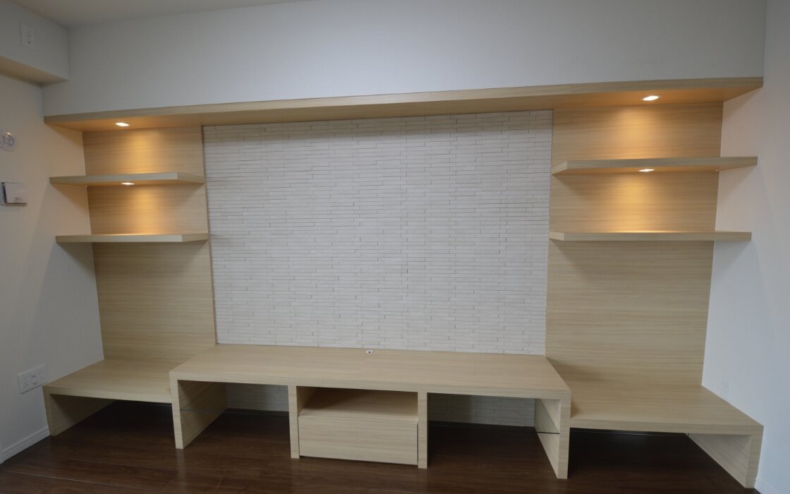 贅沢な空間を演出するフェイスの造作TVボード。一点ものの高級家具でありながら、機能性にも優れたデザイン。照明を組み込むなどすると、豪華な雰囲気を醸し出します。